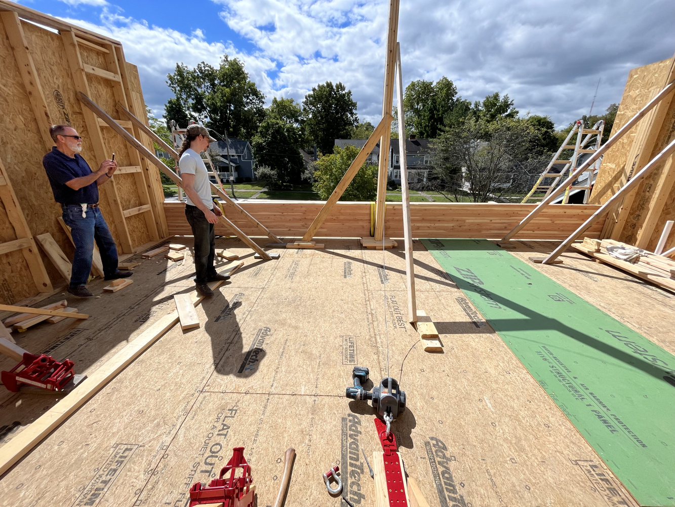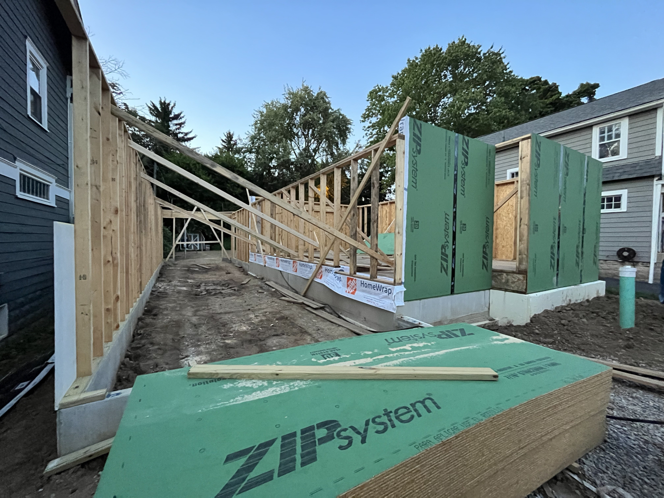 The structure was erected using traditional stick framing. It sure does help to have a few great friends who are as excited (or sometimes more) about house building as me.