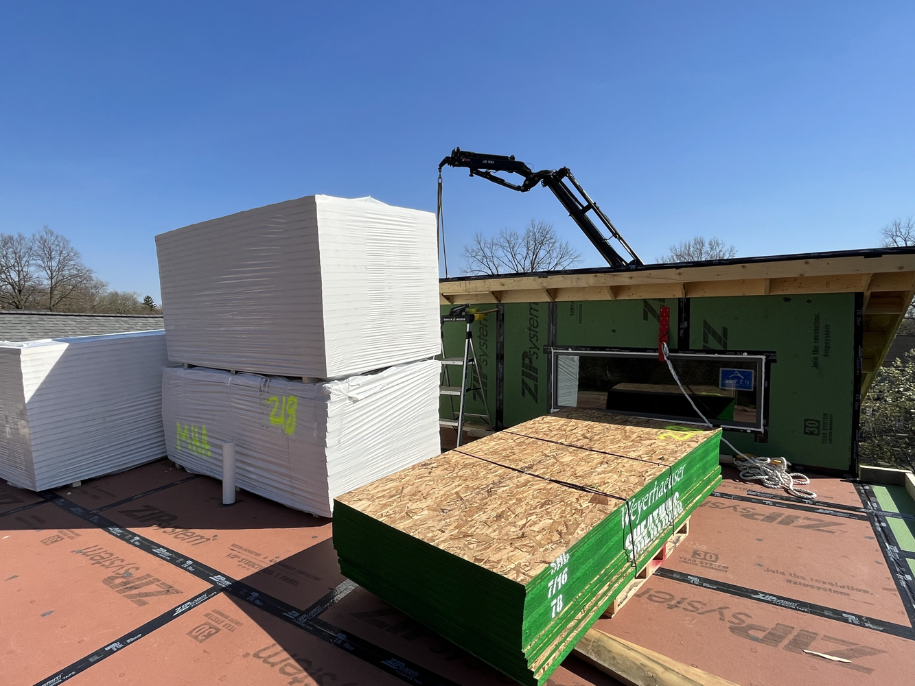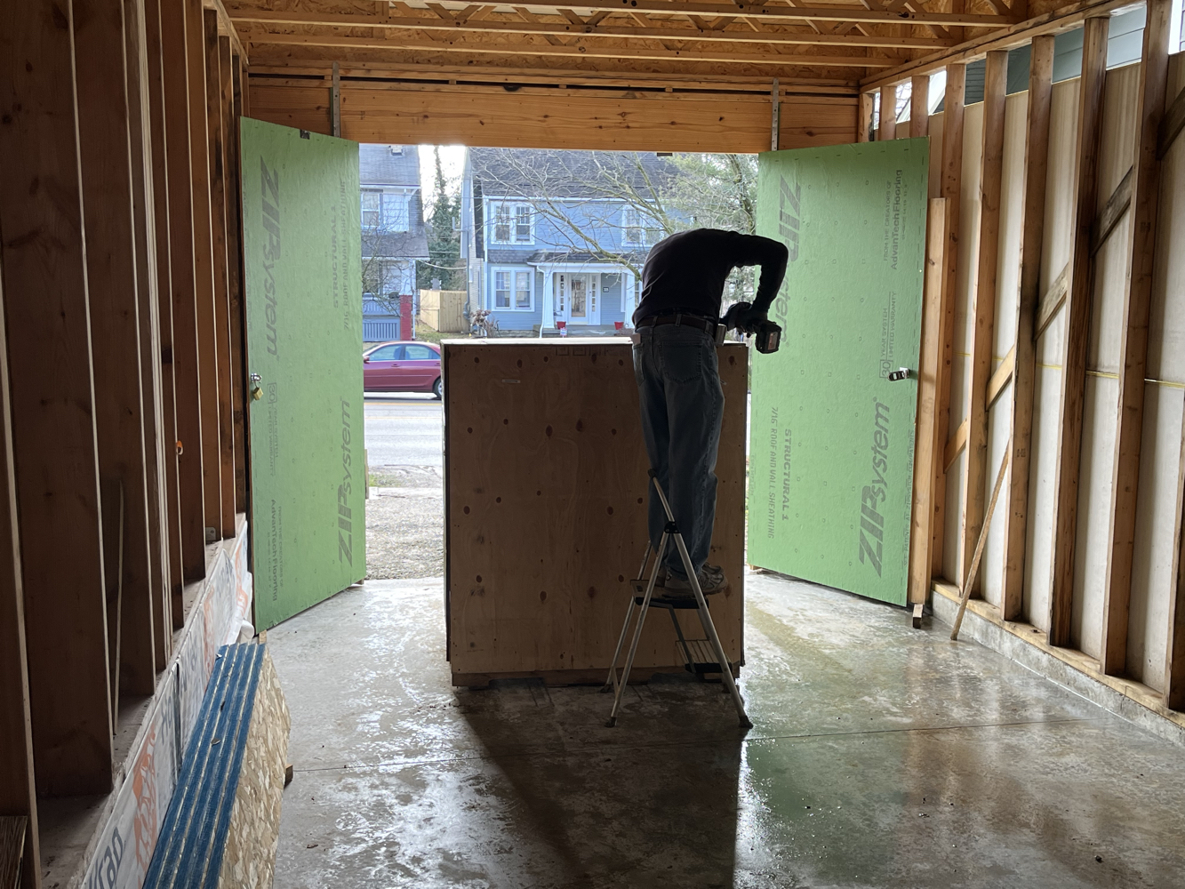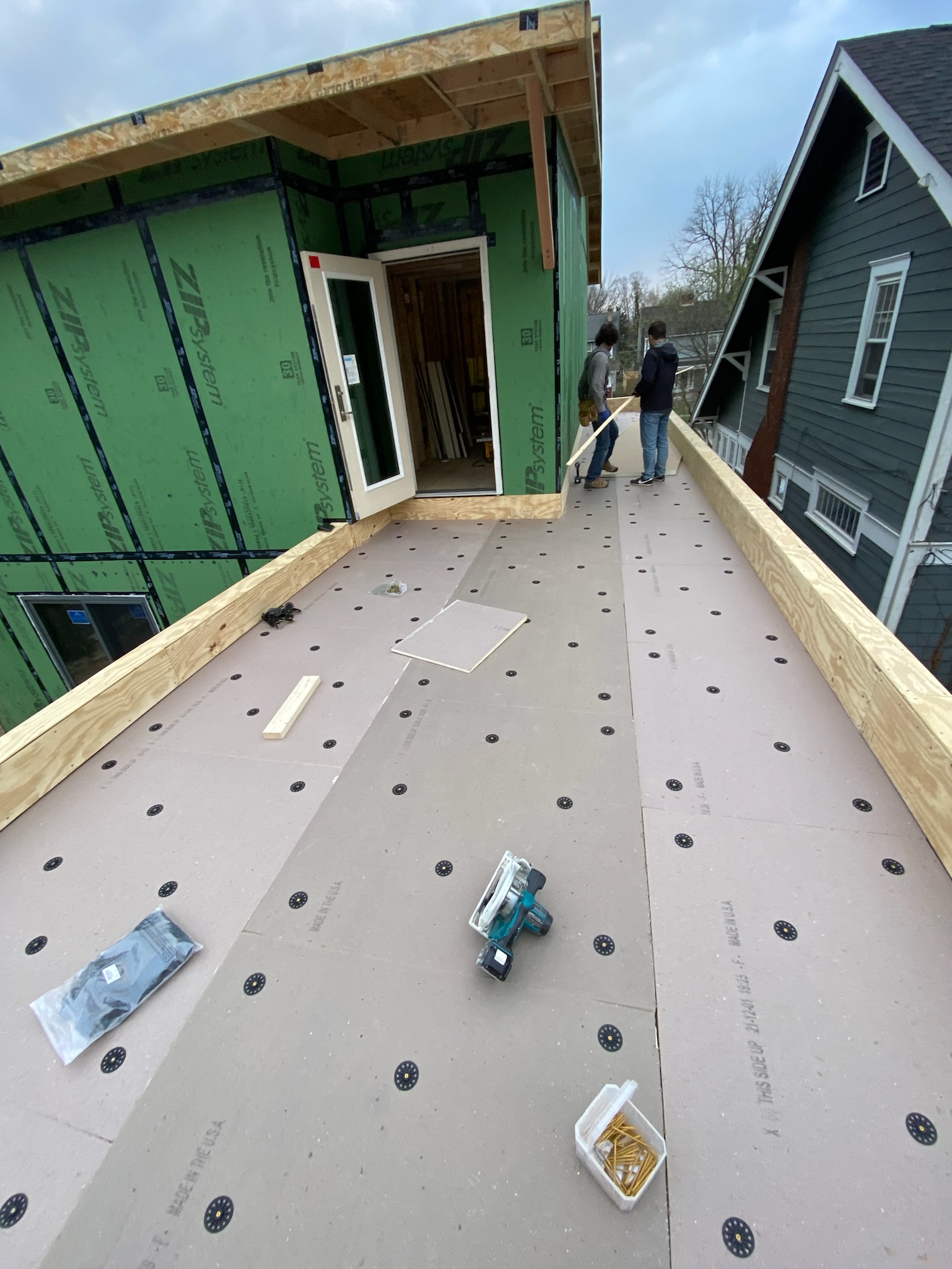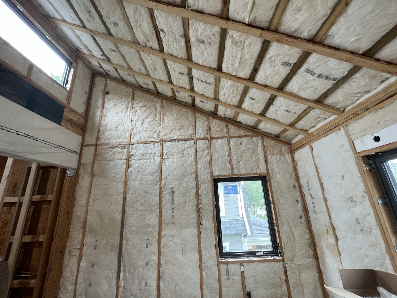 I’m doing all interior insulation myself, plus some of the exterior continuous insulation details. Itchy, itchy work, but essentially easy.